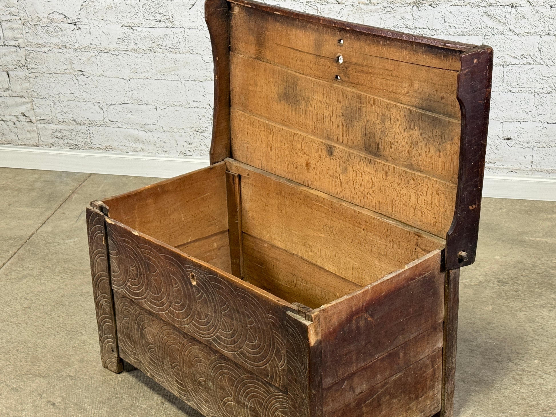 Primitive European Hand-Carved Bed Box c.1850