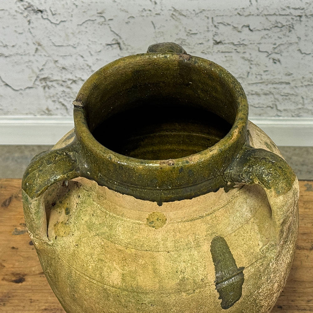 Antique Terracotta Pot with Partial Green Glaze