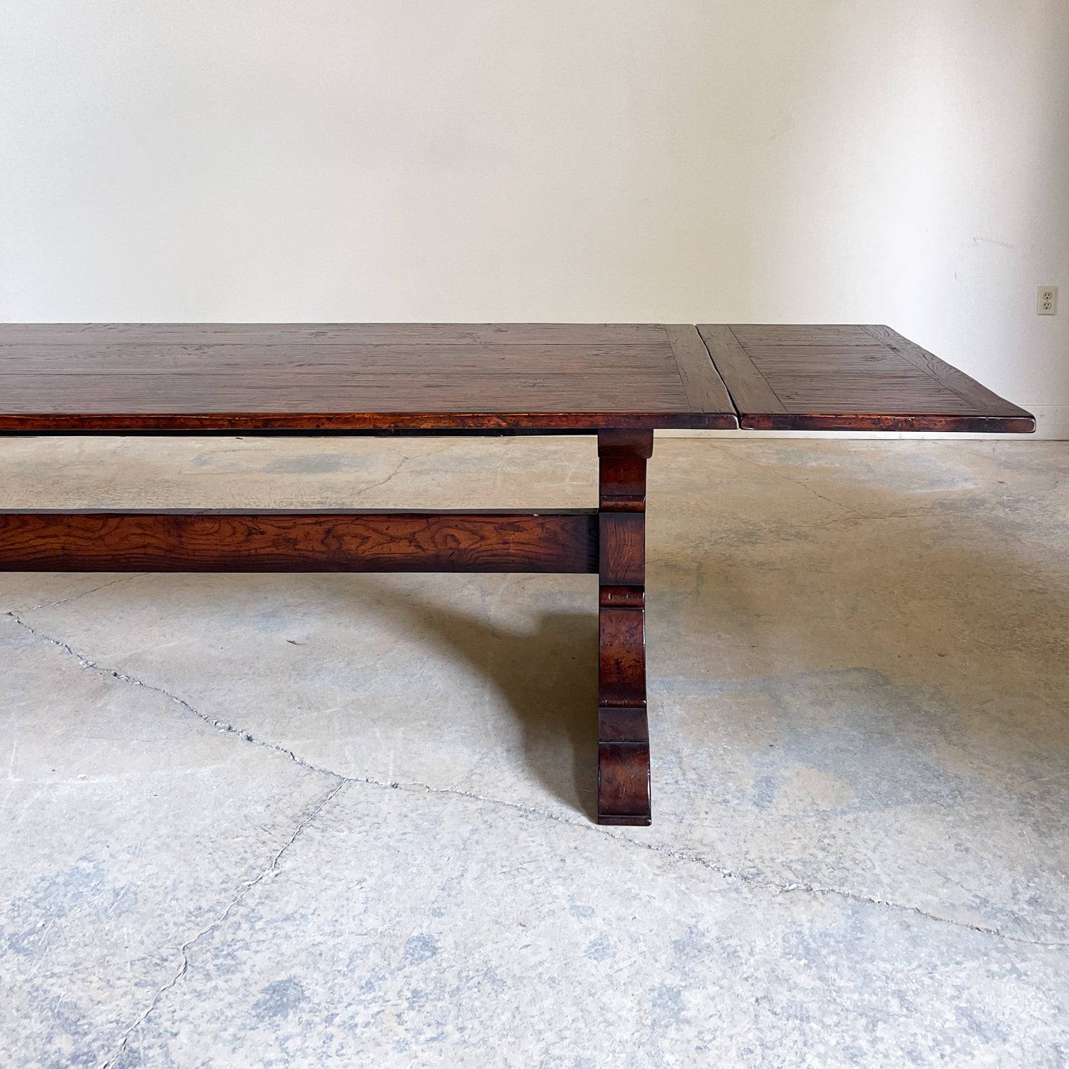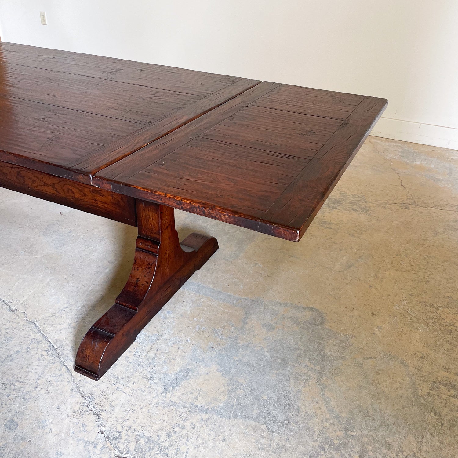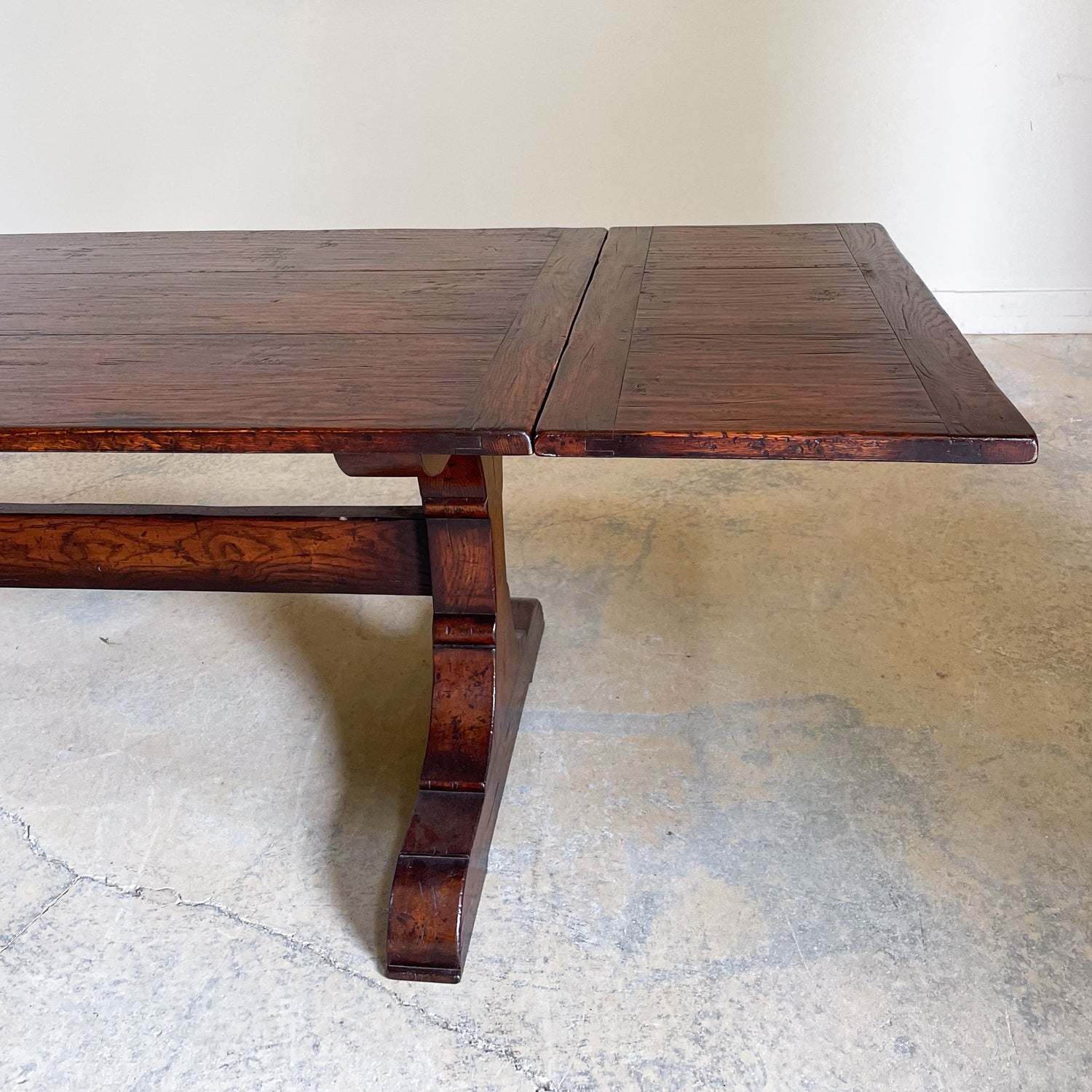 Handcrafted in England Oak Trestle Base Extension Table with 2 x 18" extensions.