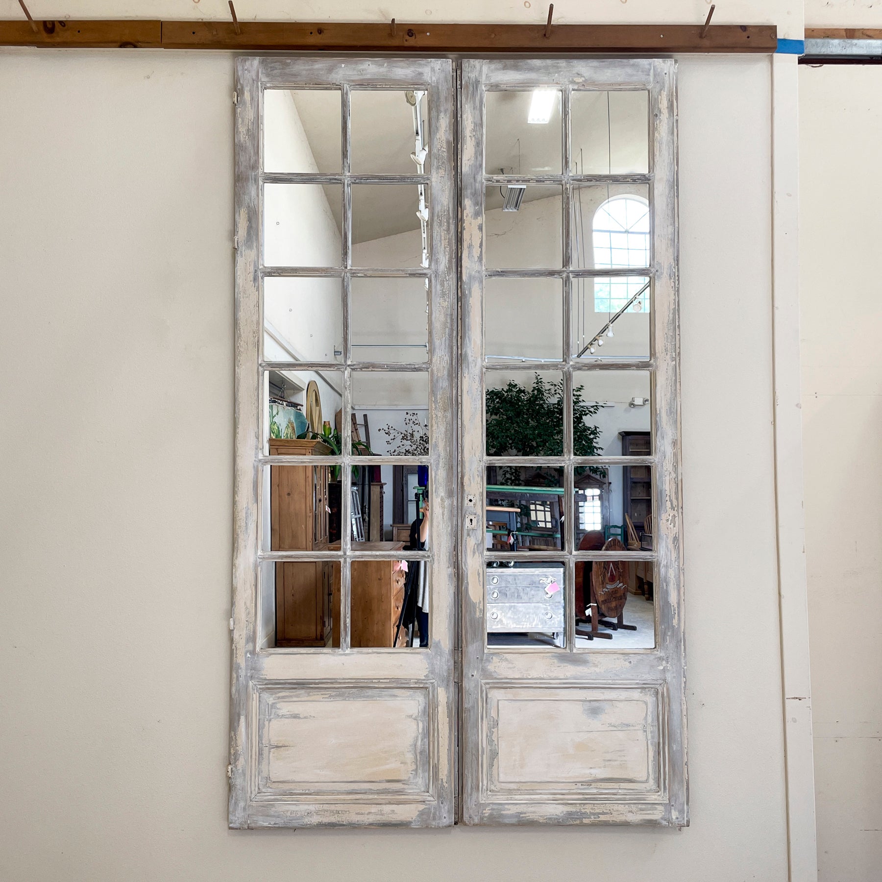 This lovely pair of French Chateau window w/mirror replacing the glass will create a statement in any room