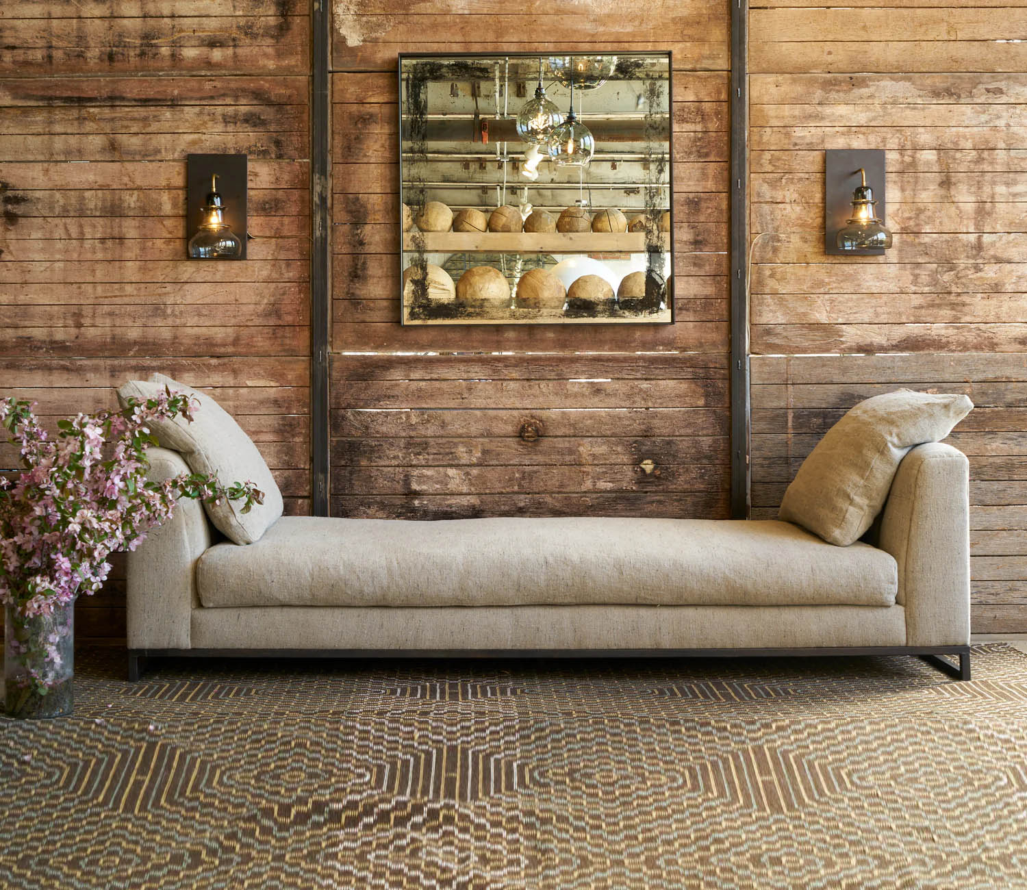 Richard 96" upholstered day bed in Andrews Burlap fabric Grade O with feather down fill for a comfortable and relaxing seat.